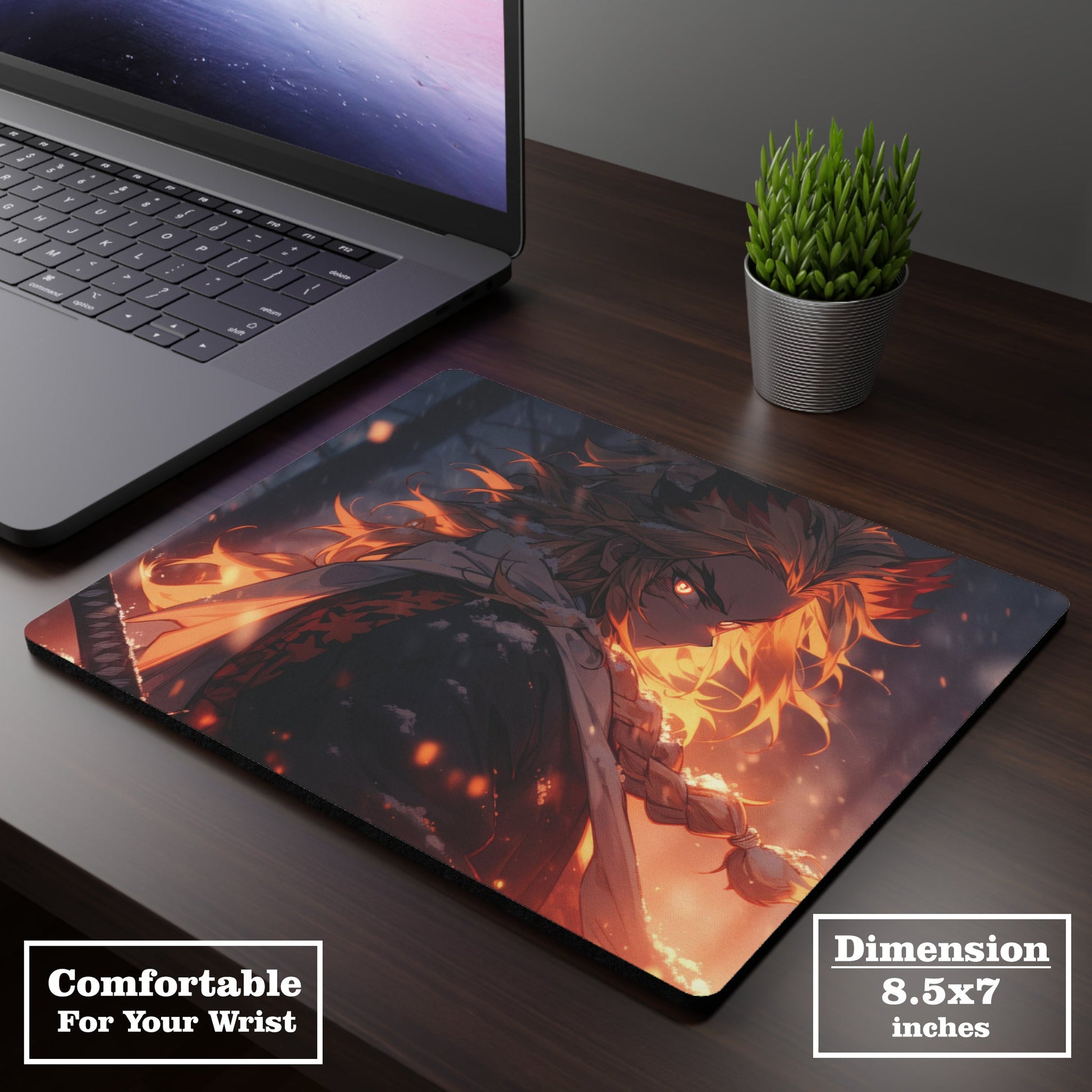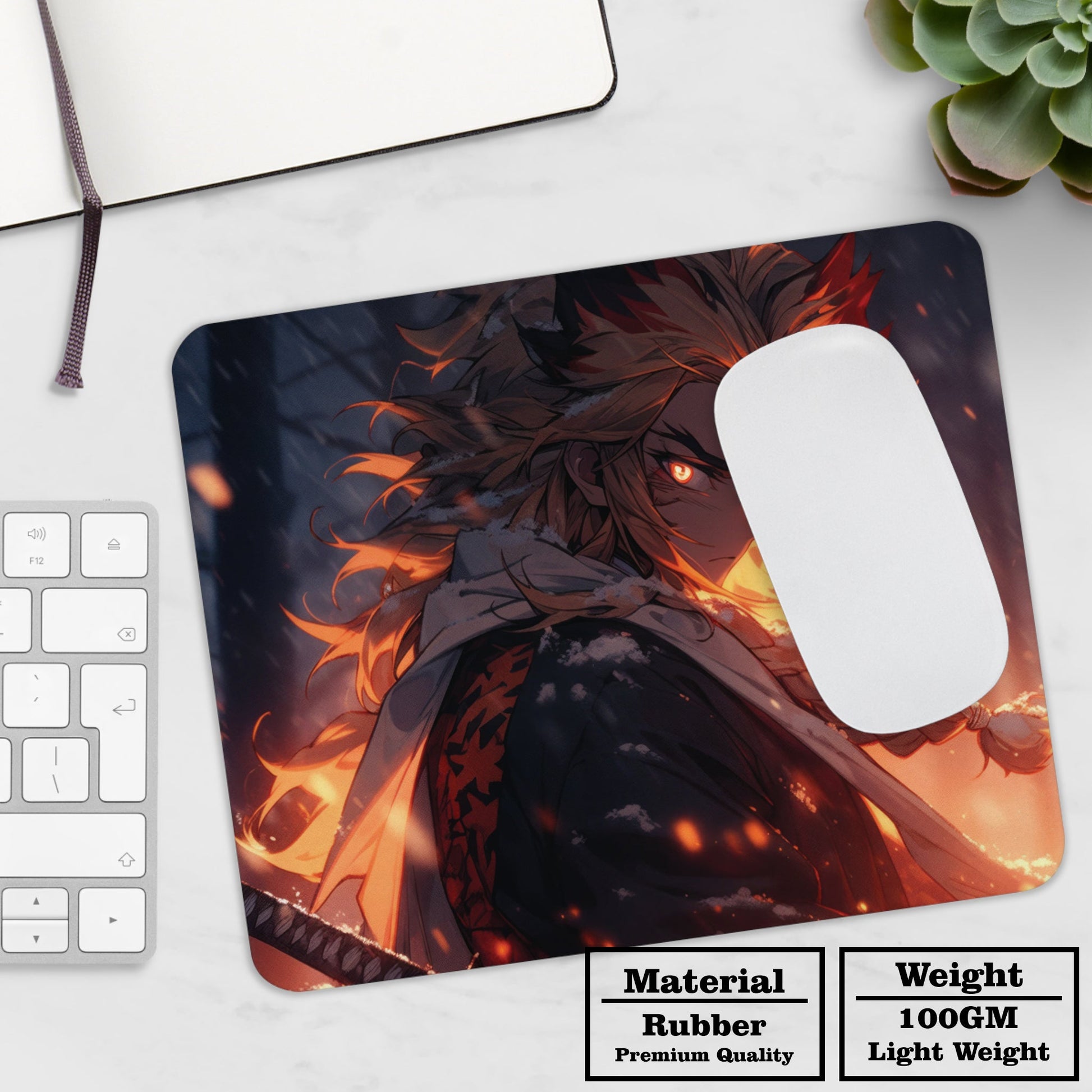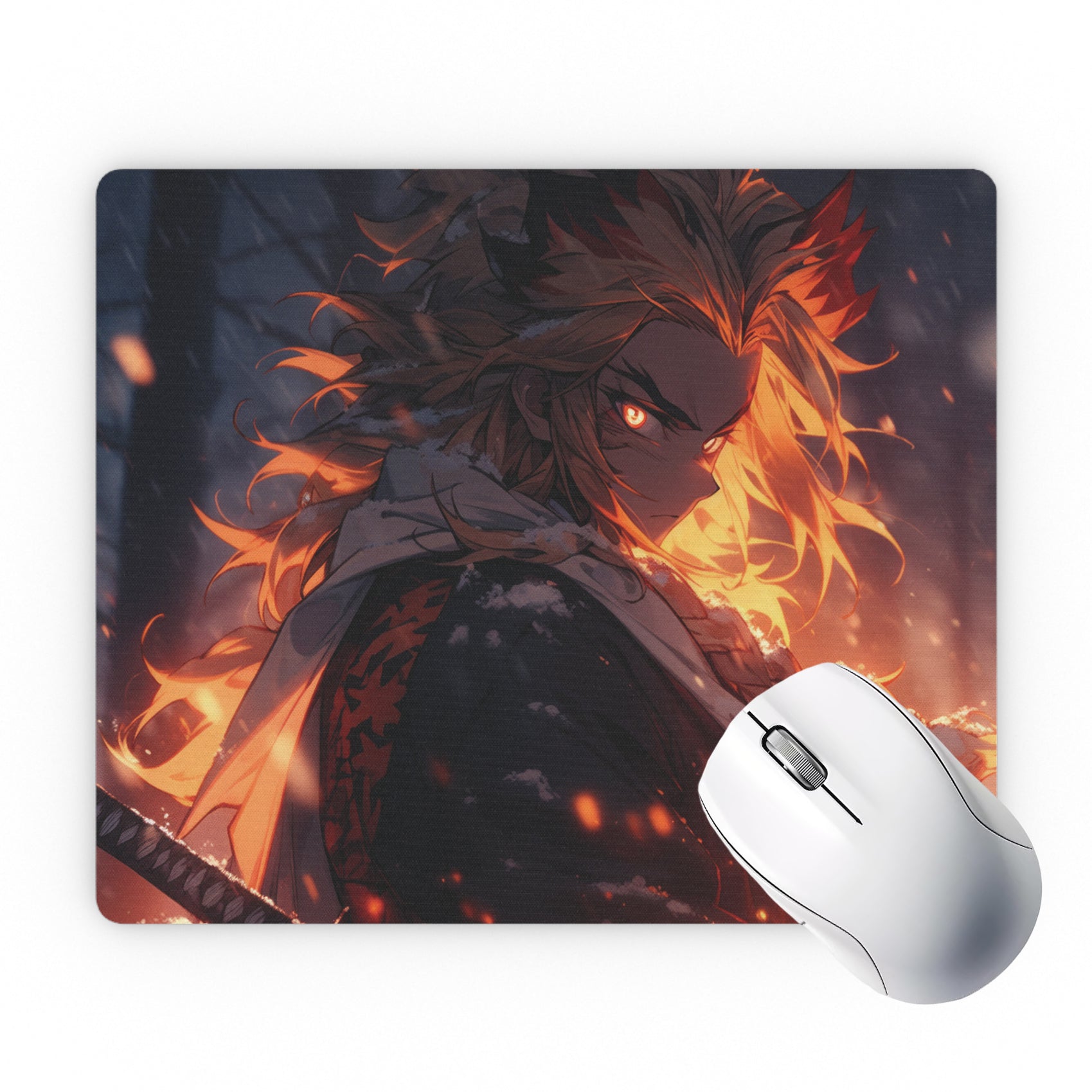 Step into the world of shadows with the FUSION CITY Kyojuro Rengoku Anime Mousepad.