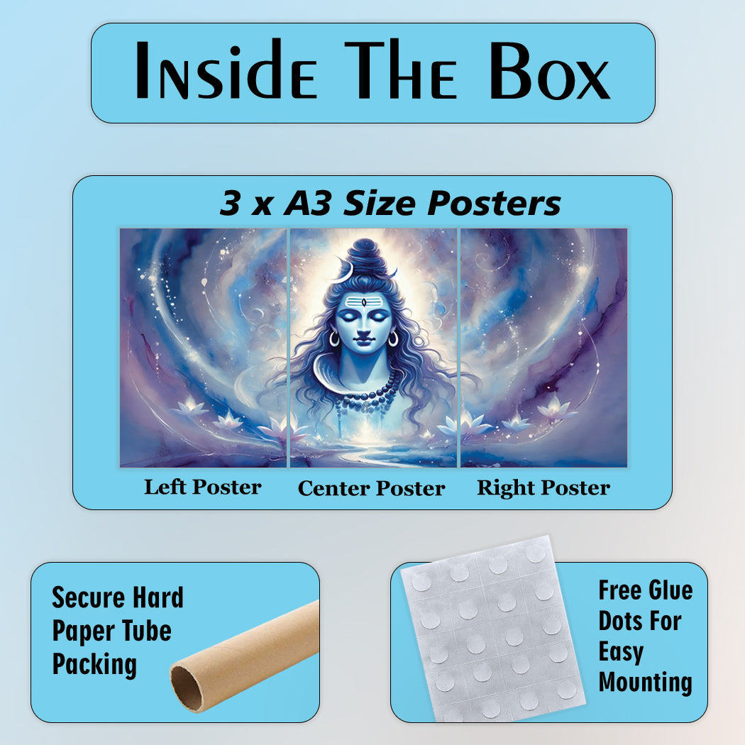 - 🎨 Design: Lord Shiva Spiritual Wall Art (Set of 3 Posters)