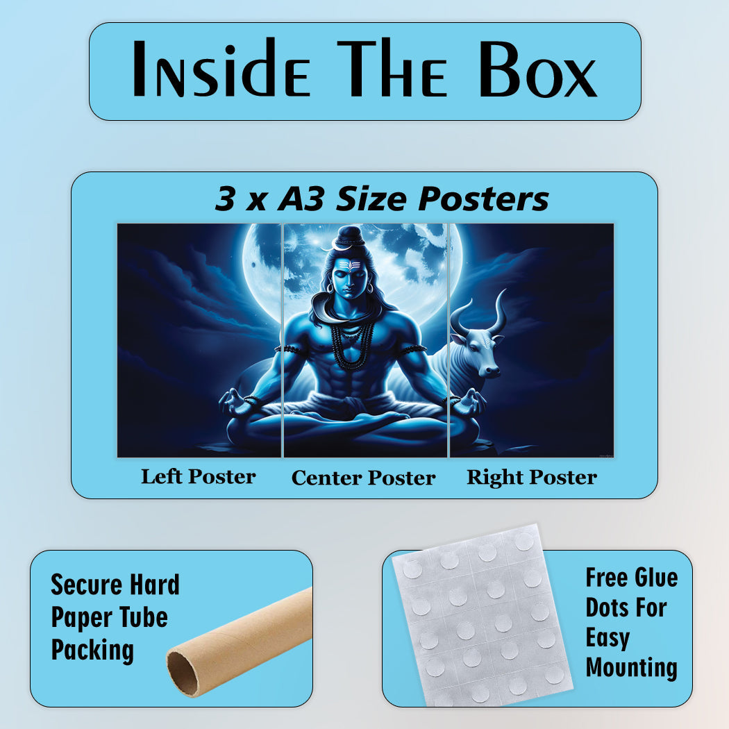 - 🎨 Design: Lord Shiva Spiritual Wall Art (Set of 3 Posters)