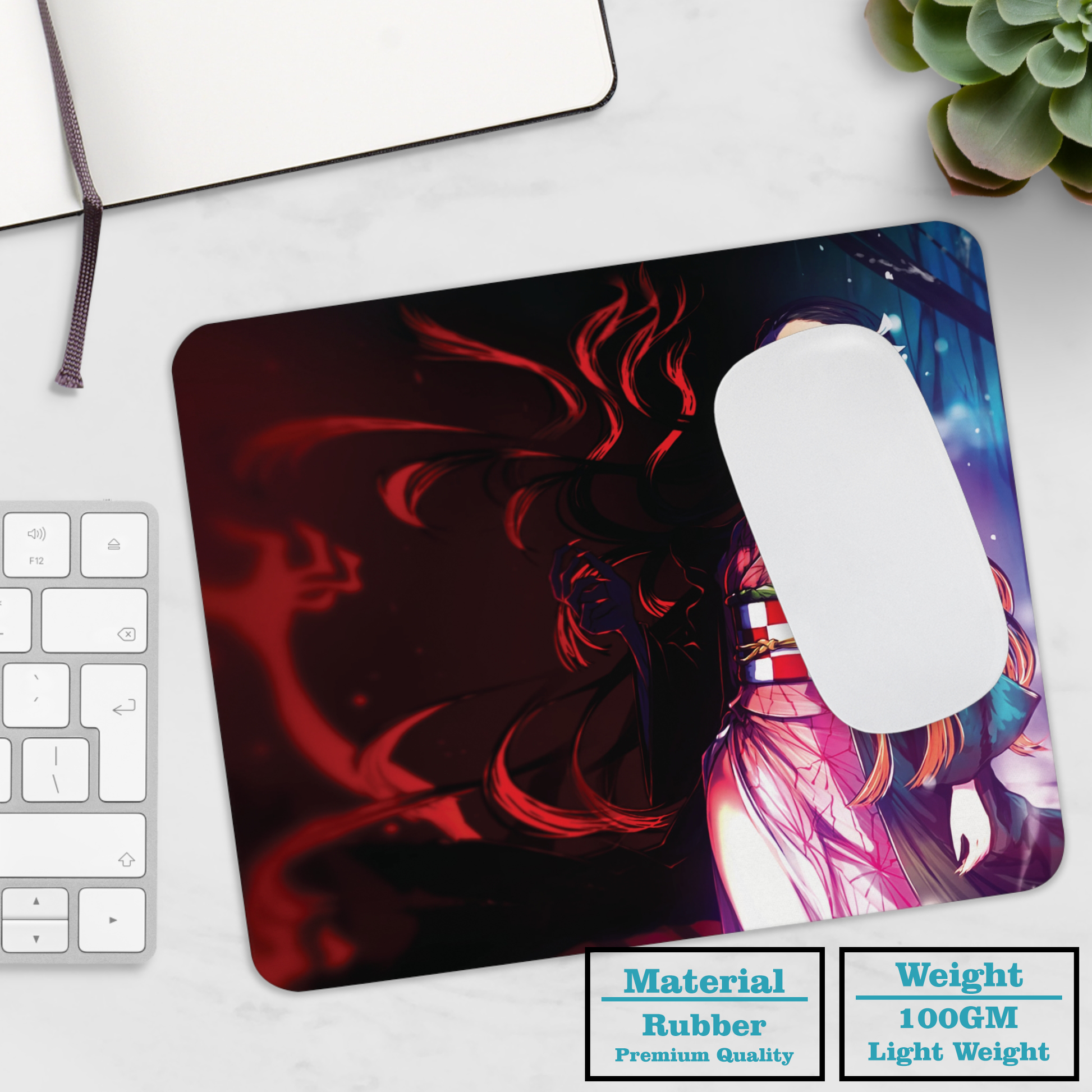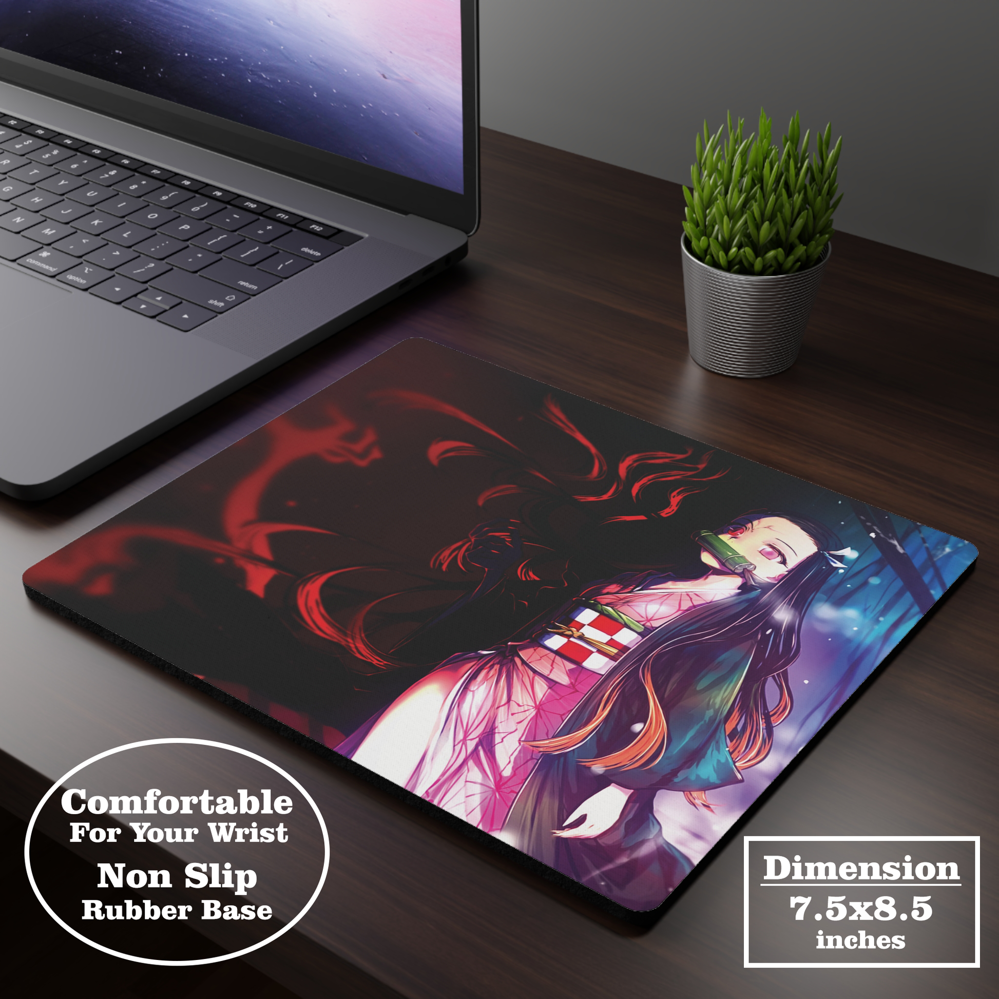 Featuring the fierce and beloved Nezuko Kamado. Perfect for fans of the anime, this mousepad adds a touch of Demon Slayer to your desk while providing the ultimate functionality