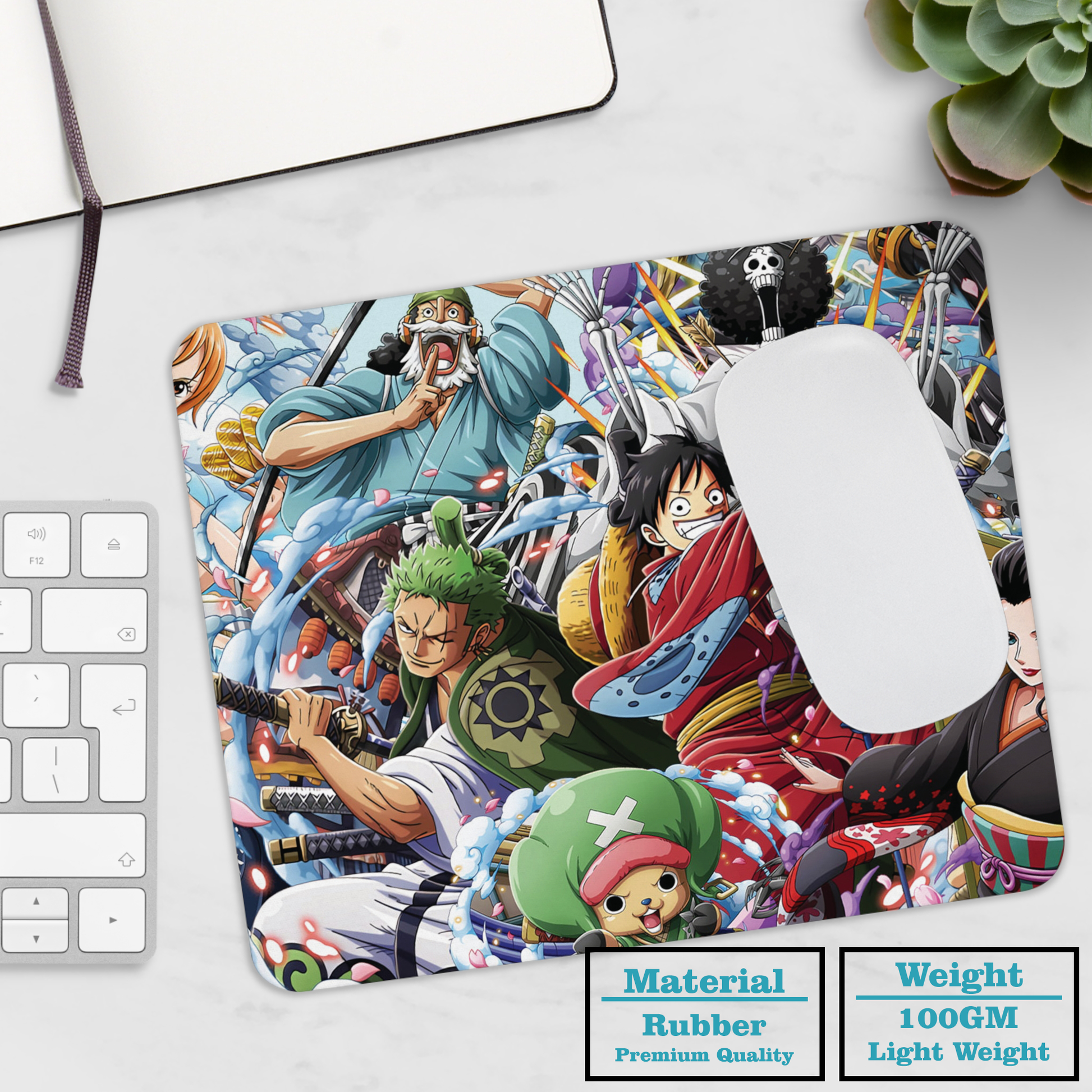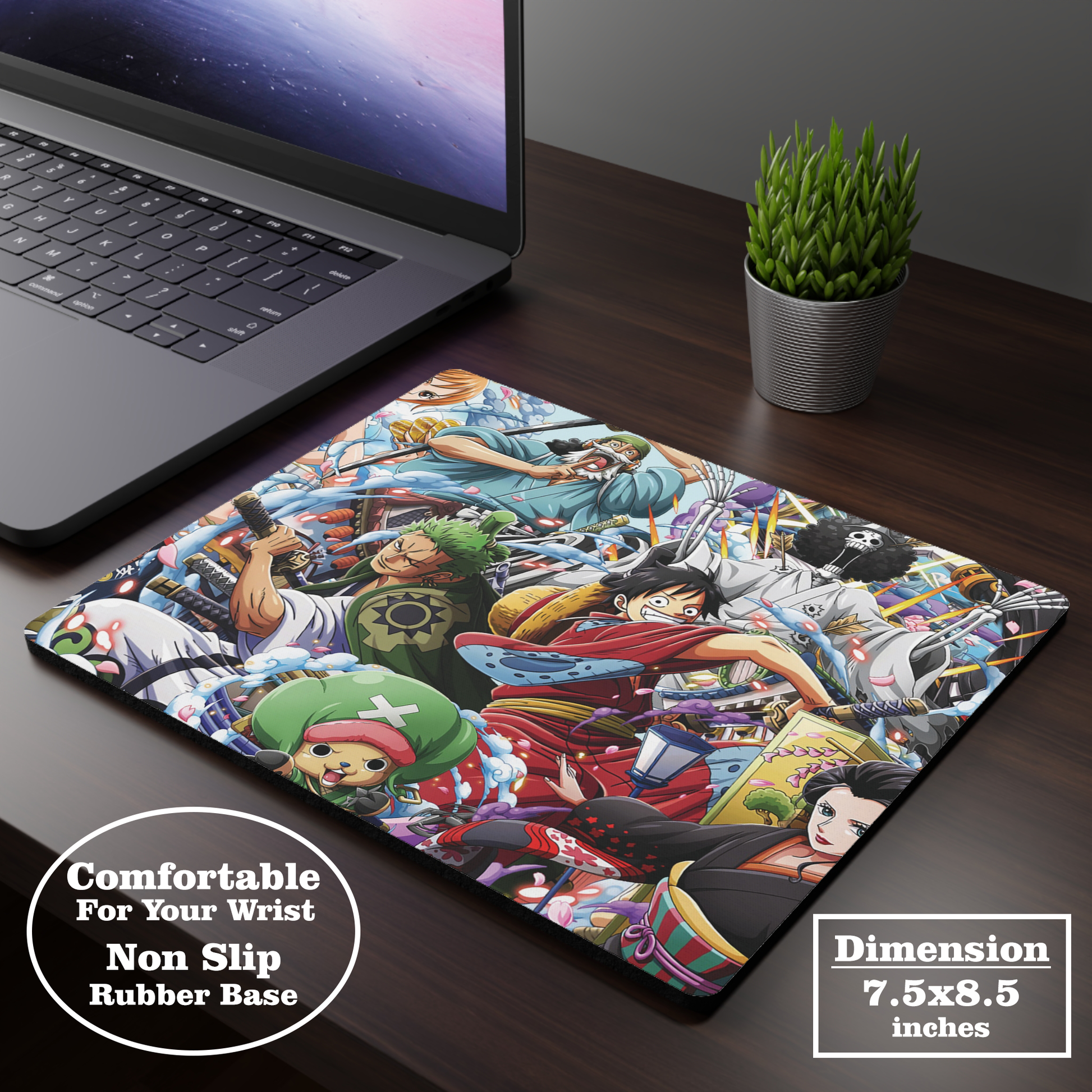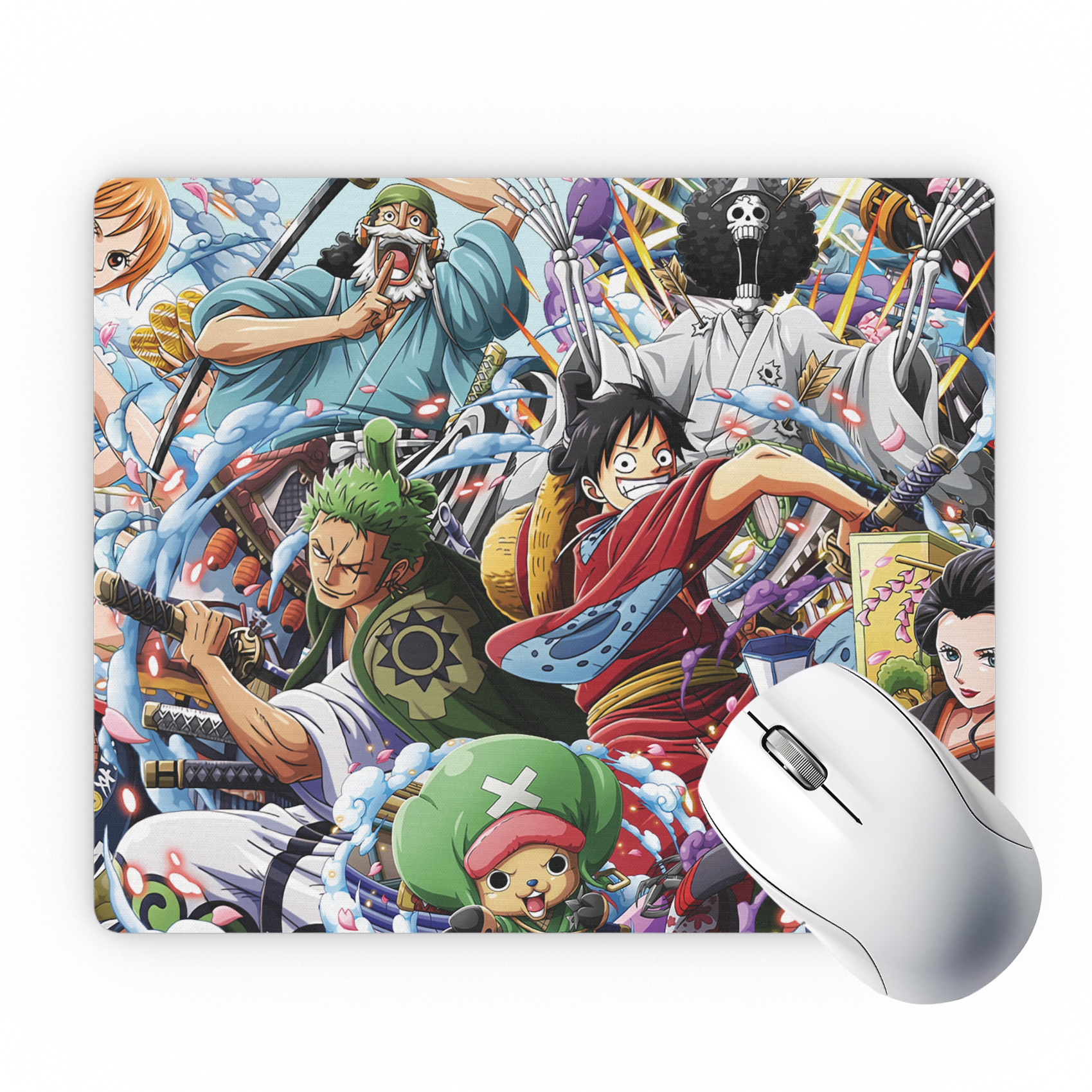 A must-have accessory for fans of the Straw Hat crew. Designed with a vibrant collage of your favorite characters, this mousepad combines anime passion with desk functionality.