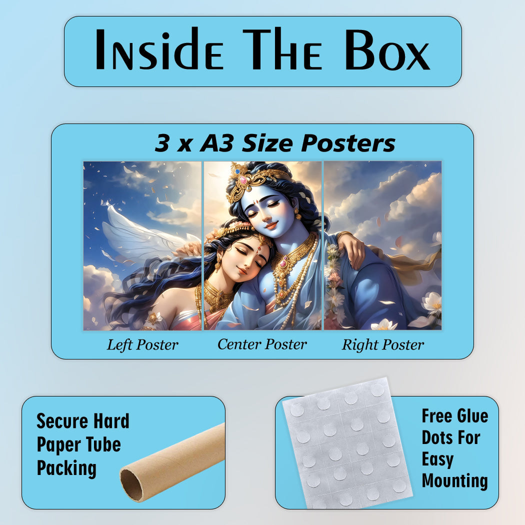 - 🎨 Design: Radha Krishna Devotional Wall Art (Set of 3 Posters)