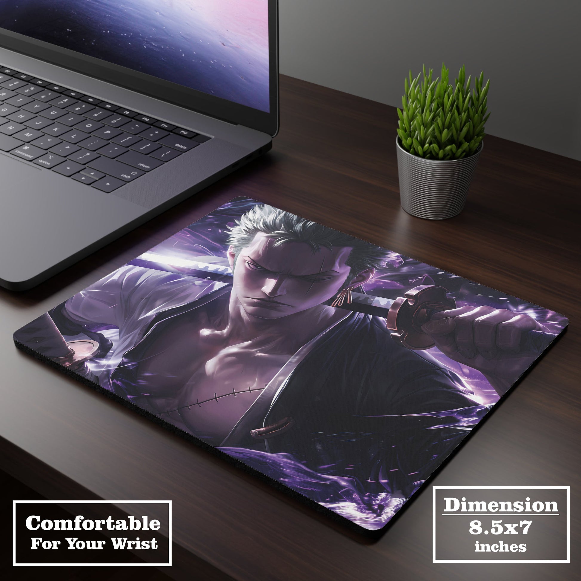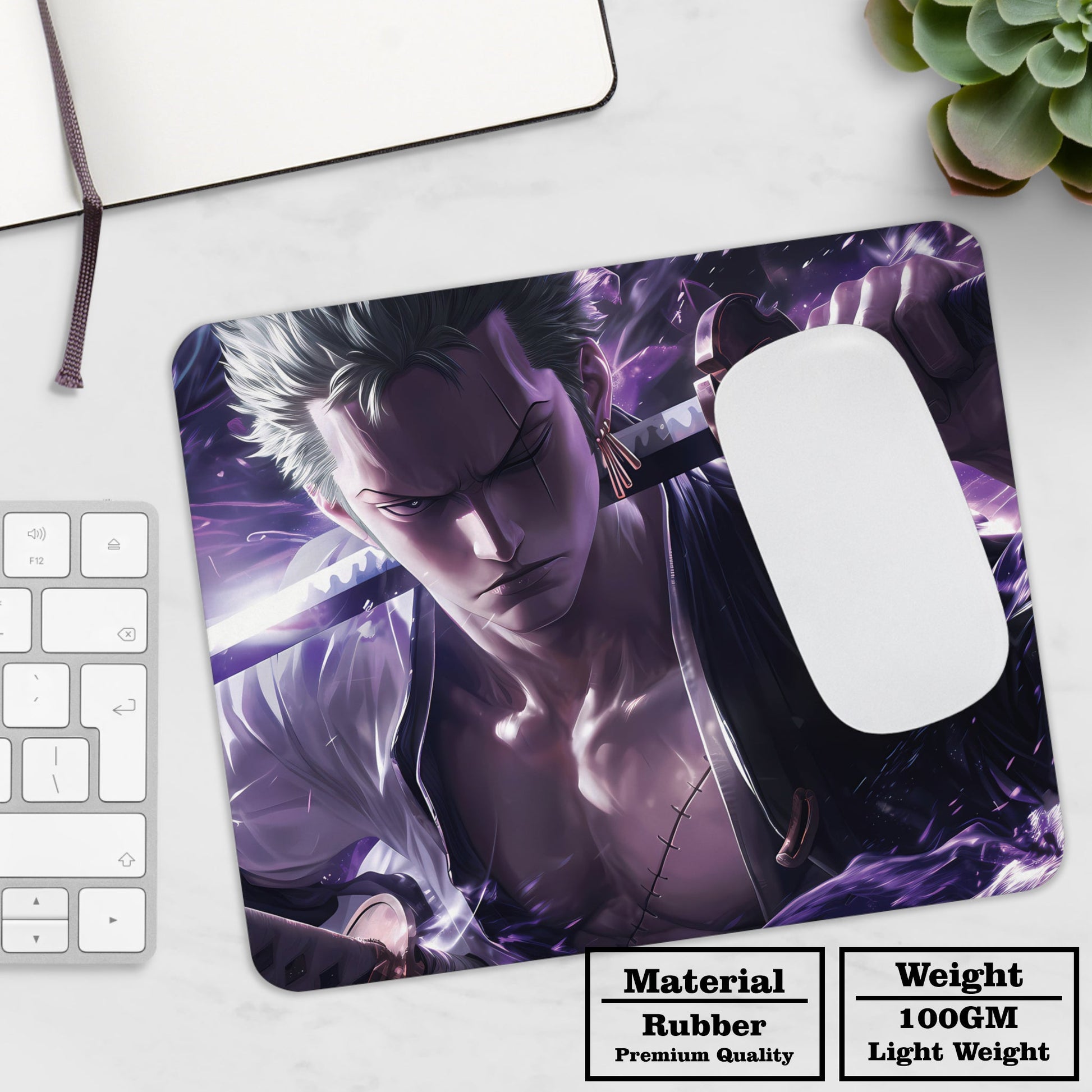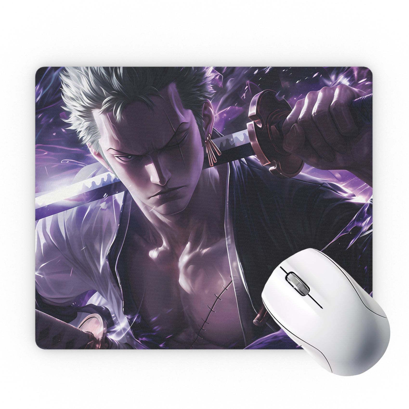 Step into the world of shadows with the FUSION CITY Roronoa Zoro Anime Mousepad.