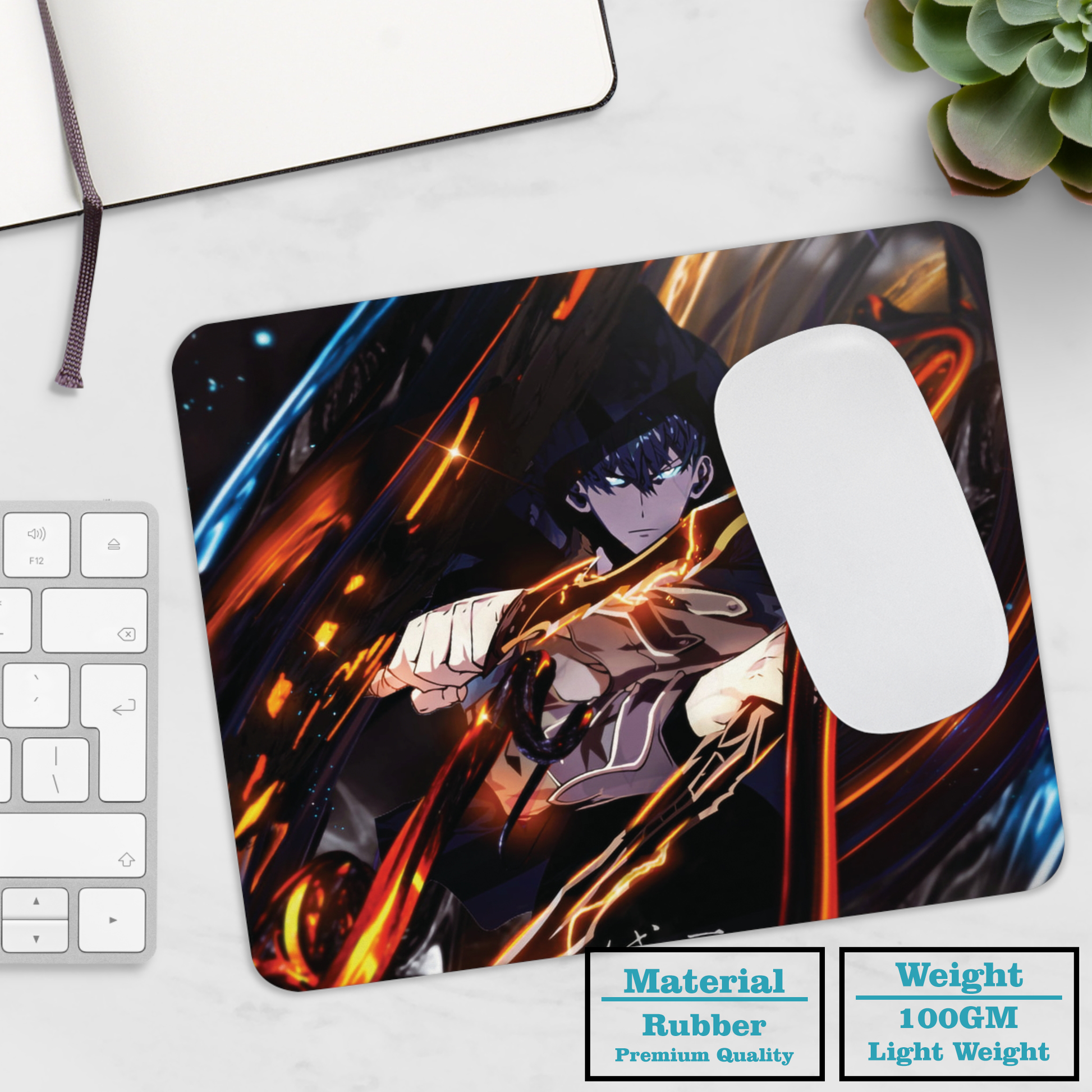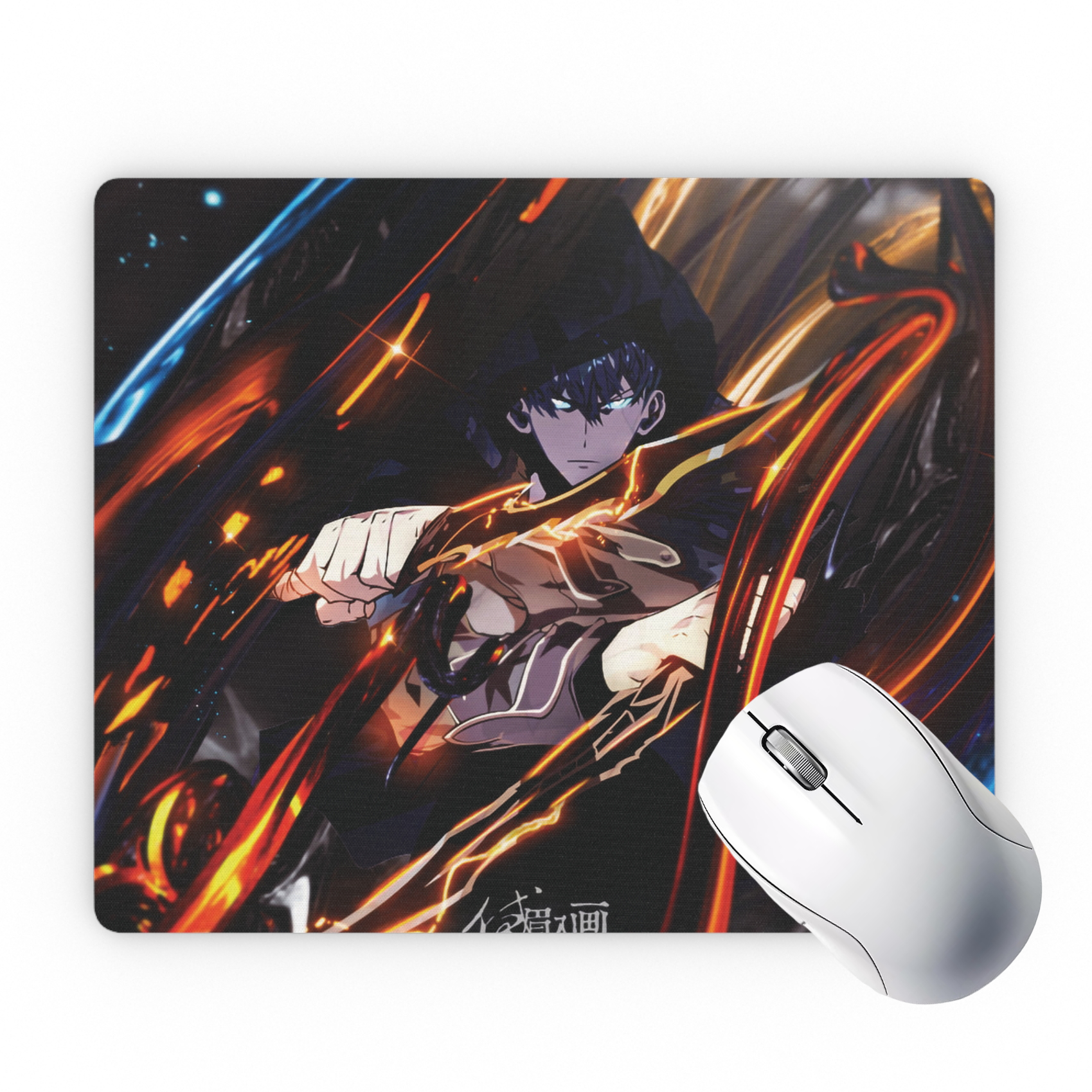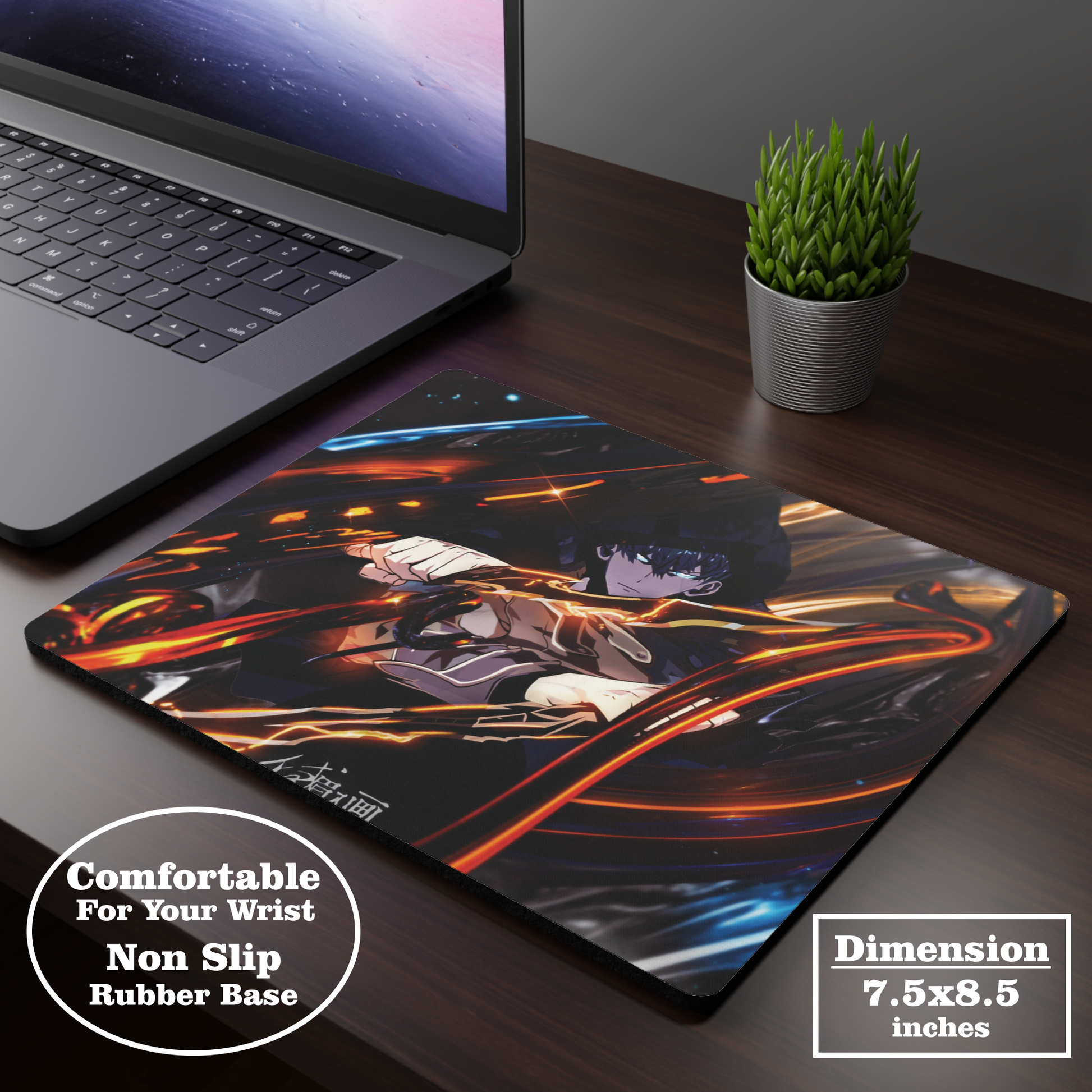featuring dynamic artwork inspired by Sung Jin Woo from the popular Korean manhwa. Whether you're grinding ranked matches or diving into creative projects, this mousepad adds both style and function to your desk.