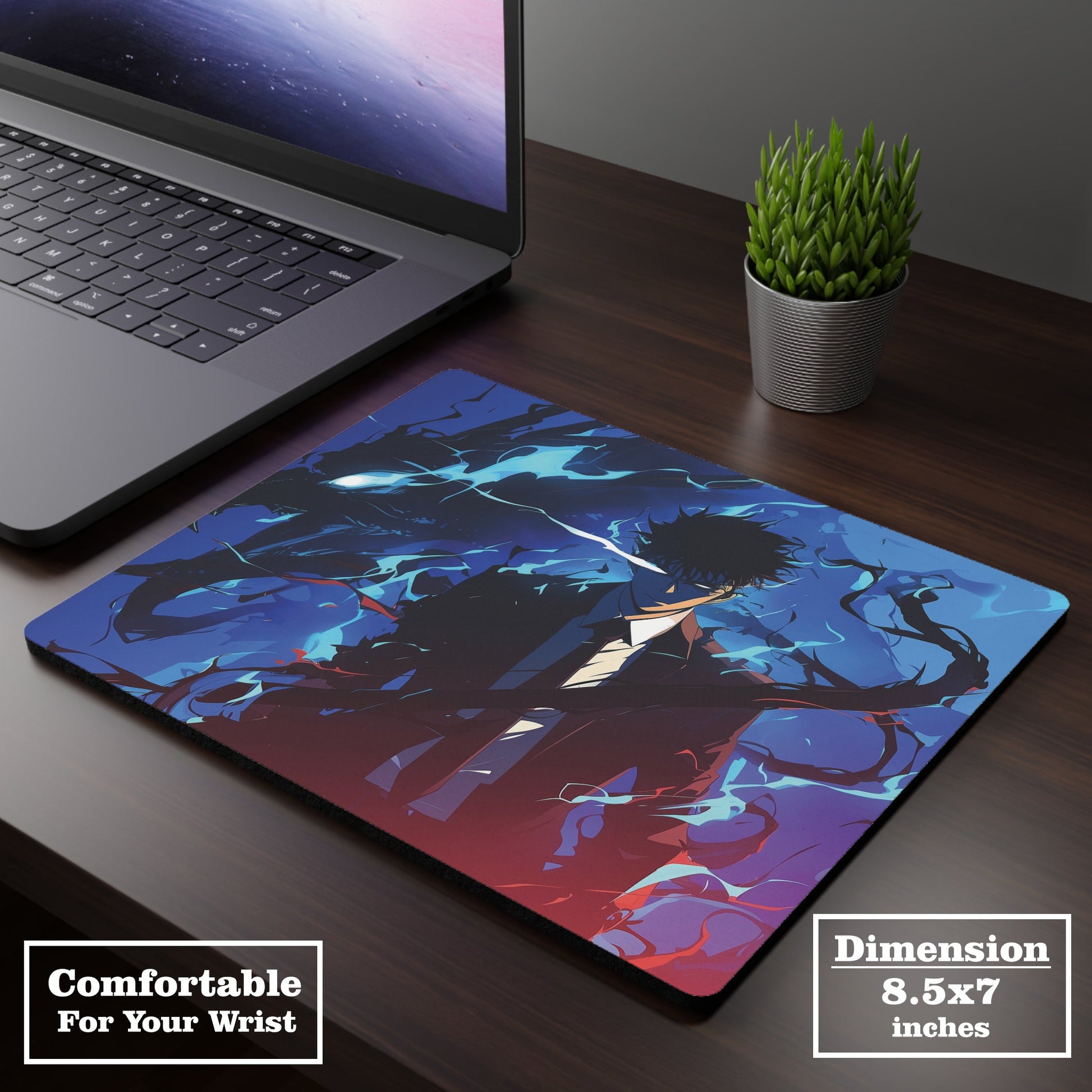 Step into the world of shadows with the FUSION CITY Solo Leveling Anime Mousepad.