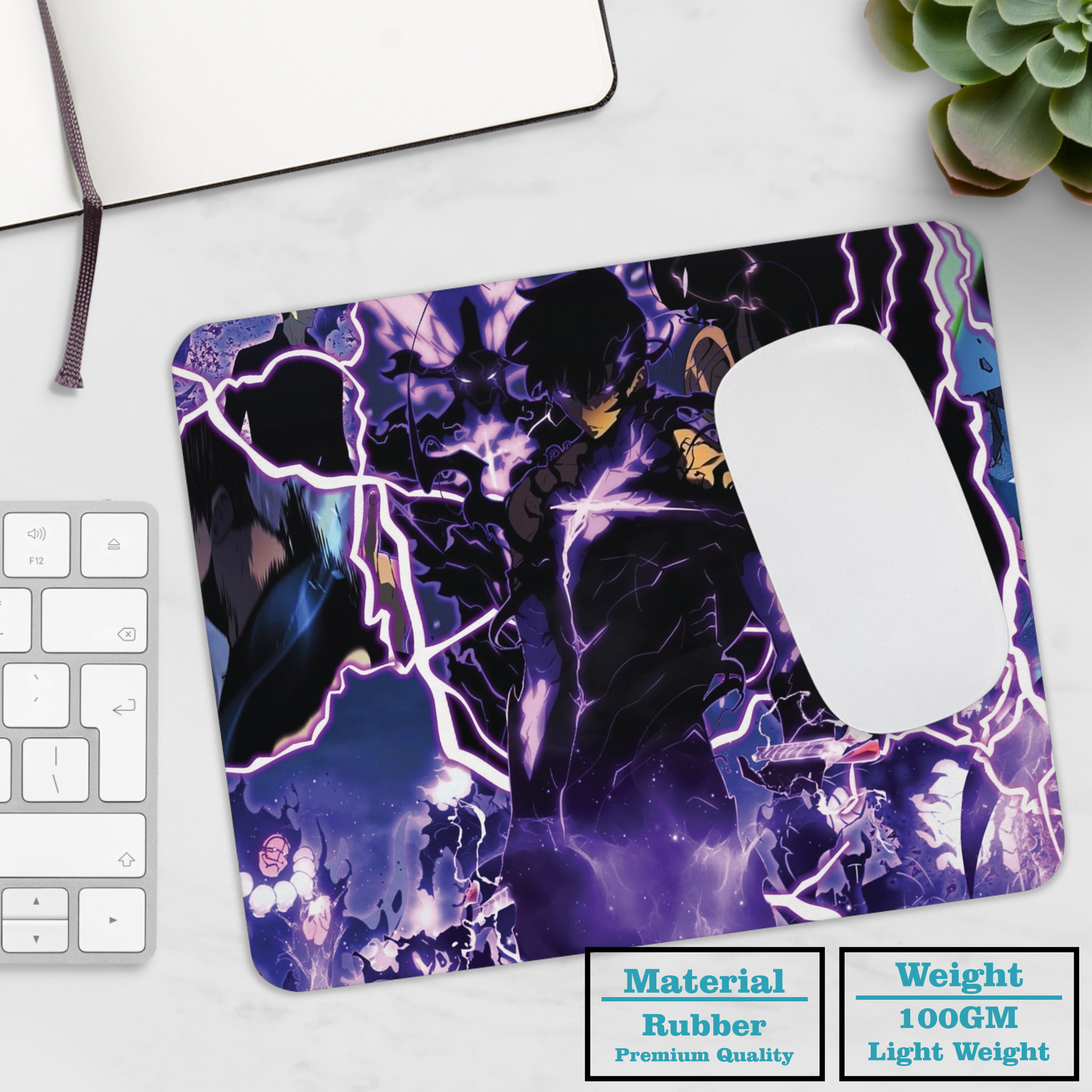 Featuring stunning artwork of Sung Jin Woo, this mouse pad brings your favorite anime hero to your workspace or gaming setup.